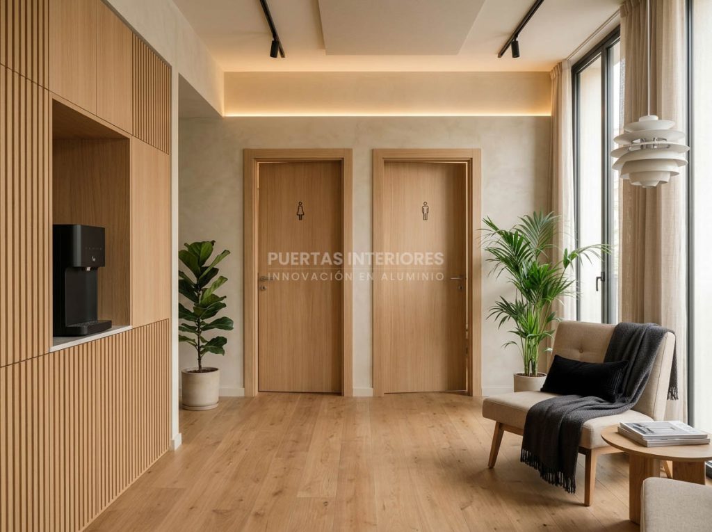 No es lo mismo una puerta en una vivienda que una puerta en unos vestuarios, en un baño o en la entrada de una zona de duchas. Aquí hay más tránsito, más humedad, más limpiezas y más riesgo de golpes o descuidos.